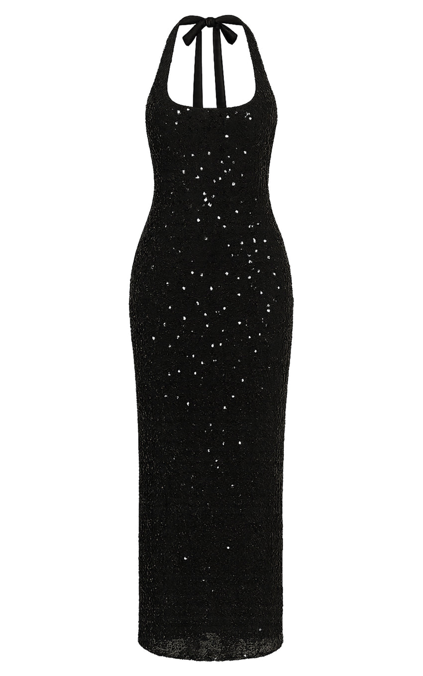 A sleek backless cut meets a sculpting bodycon fit that celebrates every curve, so you feel snatched from first sip to last dance. The Benny Maxi Dress brings drama with a high neck and open back, while the maxi length keeps it chic and effortless.